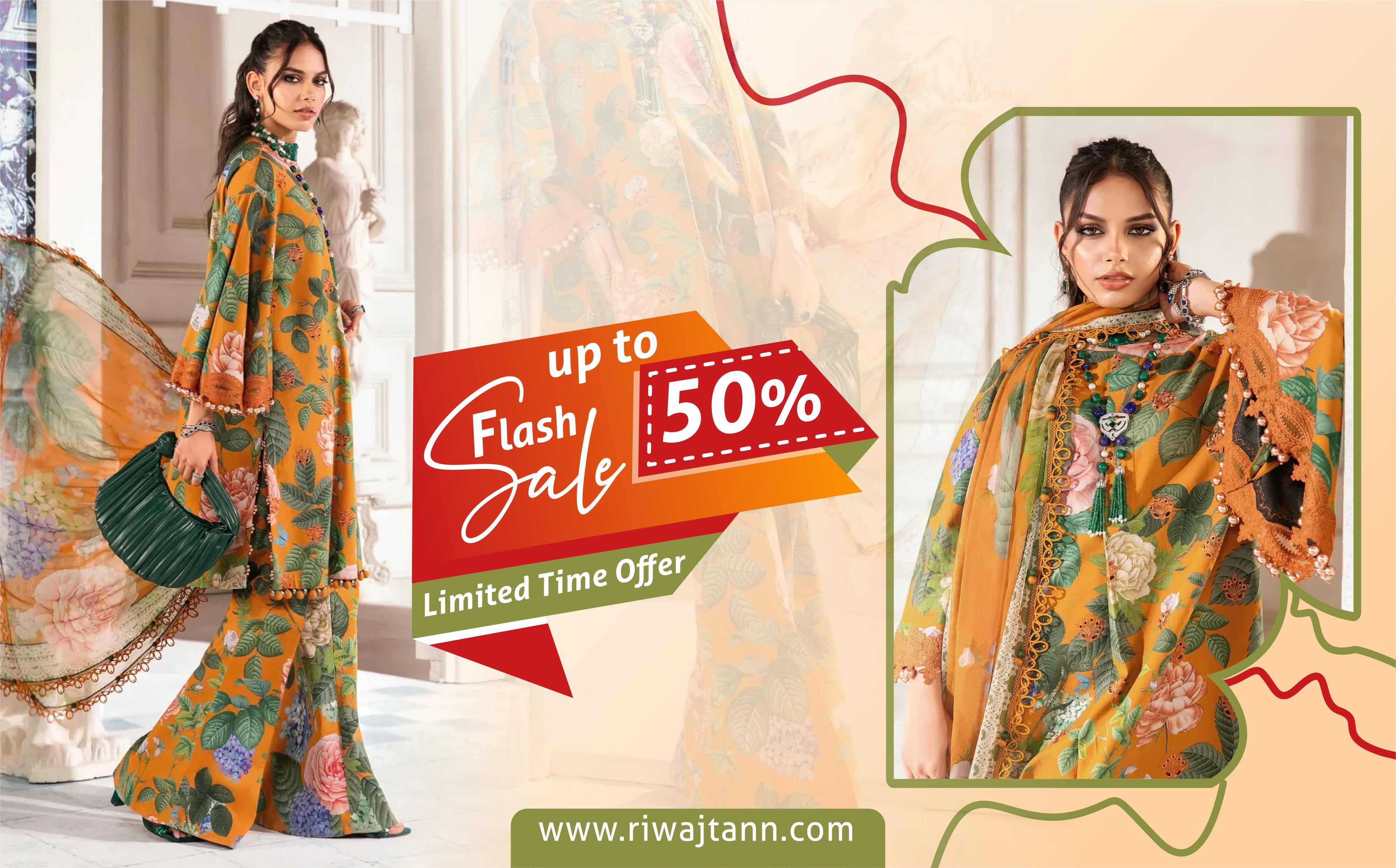 3 Piece Unstitched Heavy Embroidered Lawn Suit With Digital Printed Silk Dupatta-RT504